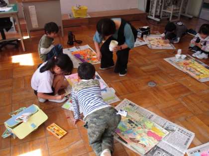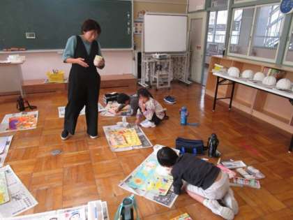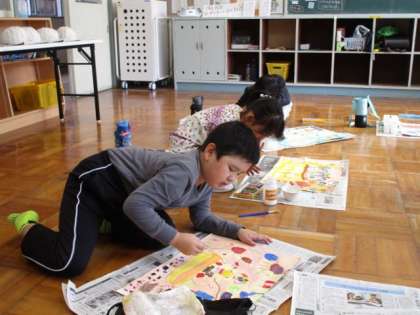 10月19日 1・2年図画工作 公開日 2023/10/19 更新日 2023/10/19 各学年から 10月19日 1・2年図画工作 「ものすごく おおきな プリンの うえで」の読書感想画を描いています。これは何色にしようか、考えながらぬっていました。 1年 2年