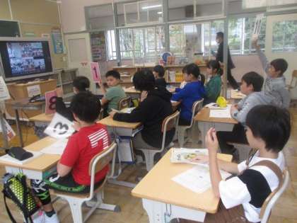 大蔵小学校で開催された研究発表会に、5・6年生がリモートで参加しました。これまで何度もリモートで授業を行ってきたので、落ち着いて参加していました。
