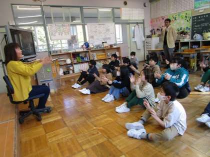 11月1日 4〜6年読み聞かせ 公開日 2023/11/01 更新日 2023/11/01 特色ある学校づくり推進事業 11月1日 4〜6年読み聞かせ 今日は歌に合わせて手遊びをした後、「どーん ちーん かーん」を読んでいただきました。 4年 5年 6年 特色ある学校づくり