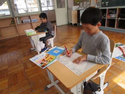 11月6日 2年算数 プリントで九九の確認をしています。6の段はもうすらすらですね。