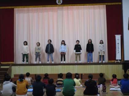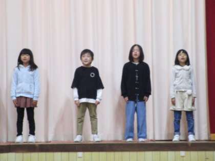 11月7日 校内学芸会 公開日 2023/11/07 更新日 2023/11/07 全校での活動 11月7日 校内学芸会 各学級ごとの暗誦と劇。そして全校音楽の合唱。どの子もとても輝いていました。お客様を迎えての披露がとても楽しみです。 1年 2年 3年 4年 5年 6年 行事