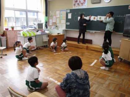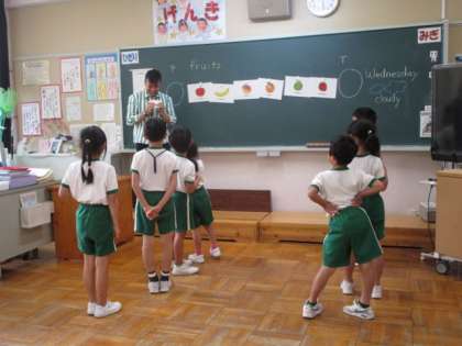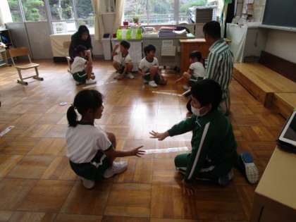 11月15日 1・2年外国語活動 公開日 2023/11/15 更新日 2023/11/15 各学年から 11月15日 1・2年外国語活動 果物の名前カードを使ってゲームをしています。ペアで両端から発音して進み、出会ったところでジャンケンです。 1年 2年