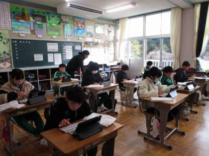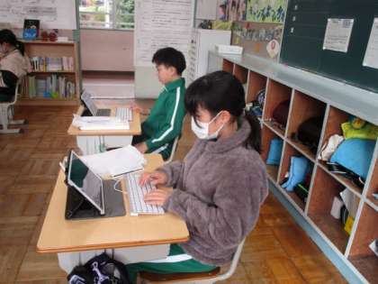 11月17日 5・6年総合的な学習の時間 公開日 2023/11/17 更新日 2023/11/17 各学年から 11月17日 5・6年総合的な学習の時間 「足助の歴史」についての学習です。自分が追究したいことについて、詳しい人は誰か、どこを訪ねればよいかなど、調べていました。 5年 6年