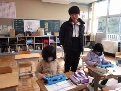 分数の分母と分子が同じ数なら「1」になる性質を使って、計算やゲームをしています。