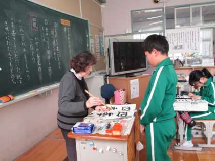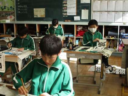 12月6日 5・6年書写 公開日 2023/12/06 更新日 2023/12/06 各学年から 12月6日 5・6年書写 今日は、書写の先生に書き初めの字を指導していただきました。5年生は「四季の風」、6年生は「三河の城」です。一人ずつアドバイスをもらっていました。 5年 6年
