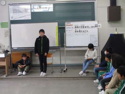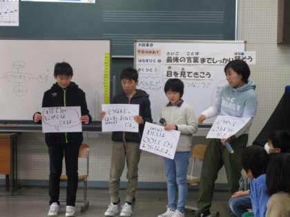 12月11日 お話集会 公開日 2023/12/11 更新日 2023/12/11 学校行事 12月11日 お話集会 今日のお話集会では、5年生が苦手だった魚釣りを家族などのアドバイスでできるようになった、という話をしてくれました。その後、3人一組で苦手なことや感想、アドバイスを出し合いました。なるほど、と思う克服アドバイスがたくさんありました。 1年 2年 3年 4年 5年 6年