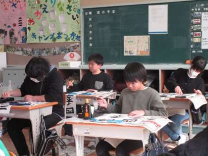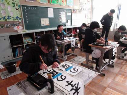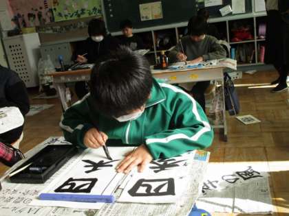 12月13日 5・6年書写 公開日 2023/12/13 更新日 2023/12/13 各学年から 12月13日 5・6年書写 今週も、書写の先生に一人一人書き初めを見ていただきました。どの子も、字を書くポイントに気を付けながら、ていねいに筆を動かしていました。 5年 6年