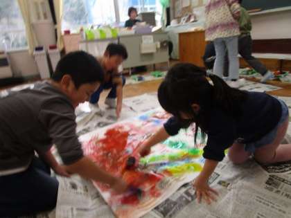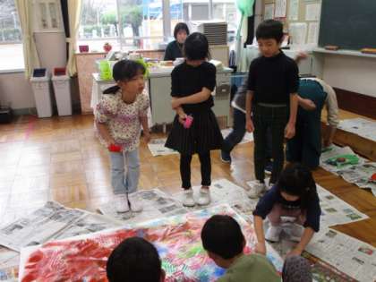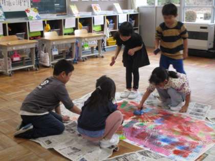 1月11日 1・2年図画工作 公開日 2024/01/11 更新日 2024/01/11 各学年から 1月11日 1・2年図画工作 ローラーに絵具を付けてころころ。みんなで大きな用紙に思い思いのローラーと色で模様を付けていました。 1年 2年