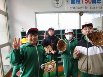 昨日校長先生から紹介のあった大谷翔平選手のグローブ。今日、みんなで手に取ったり、キャッチボールをしたりしました。
