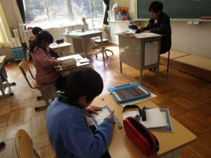 先日の校外学習でお世話になった参合館の方にお礼の手紙を書いています。