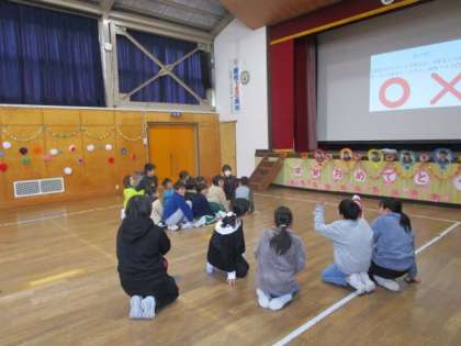 3月7日 6年生を送る会 公開日 2024/03/07 更新日 2024/03/07 全校での活動 3月7日 6年生を送る会 卒業を控えた6年生に楽しんでもらおうと、1〜5年生が力を合わせて「6年生を語る会」を開きました。〇×クイズ、ゲーム、思い出ムービー、プレゼント贈呈など、6年生は思い切り楽しんでいました。 1年 2年 3年 4年 5年 6年 行事
