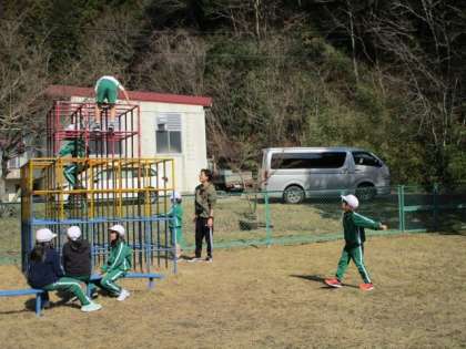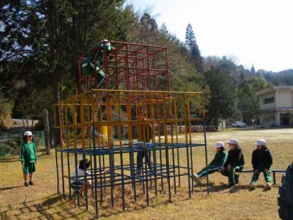 3月15日 3・4年体育 ジャングルジムを使って「ボディイメージ」をしています。