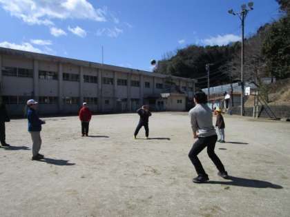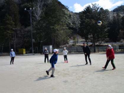 校長先生も加わってバレーのパスをしています。何回続くかな。