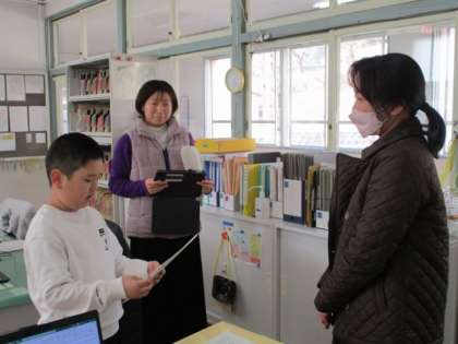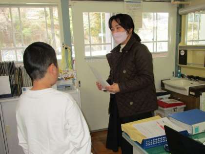 先生に書いた感謝の手紙を読んで渡しています。温かな気持ちが伝わってきました。