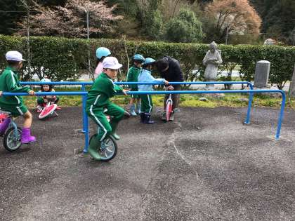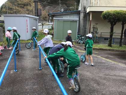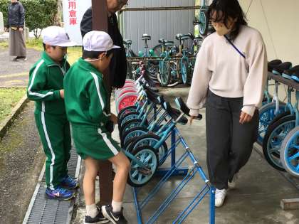 一輪車の調整や整頓をしました。試し乗りをする子もたくさんいました。長靴でスイスイと乗りこなす姿に驚きました。