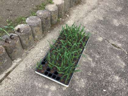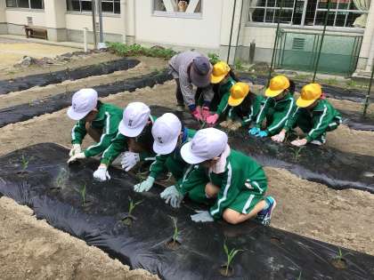 とうもろこしの苗を植えました 公開日 2024/05/09 更新日 2024/05/09 特色ある学校づくり推進事業 1、2年生の生活で、今日はとうもろこしの苗を植えました。松井さんご夫妻が、とうもろこしの苗をわけてくださいました。松井さんに、丸い穴をあける道具で、マルチシートに穴をあけていただきました。1、2年生の子どもたちが、苗をそっと持って植える姿が印象的でした。。 1年 2年 3年 4年 5年 6年 PTA 特色ある学校づくり