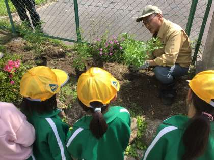 ウコギの植樹をしました 公開日 2024/06/05 更新日 2024/06/05 学校行事 五加木の会の方に教えていただきながら、1年生がウコギの植樹をしました。校門脇に植えました。大きくなるのが楽しみです。 1年 2年 3年 4年 5年 6年 PTA