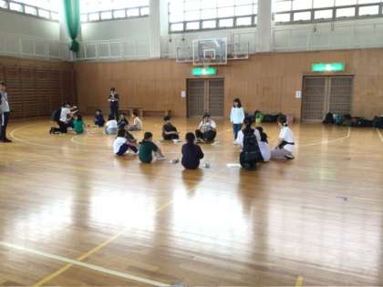 5年生の足助連合キャンプが始まりました。入所式を行い、出会いの会を行いました。みんな元気です。