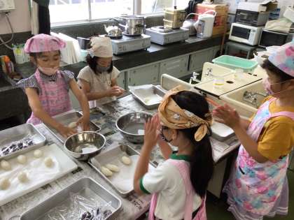 1年生は、生活科の学習で、先日、地域で見つけてきた朴葉を使い、朴葉餅、柏餅作りをしました。お餅をこねたり丸めたりしました。美味しそうなお餅ができました。