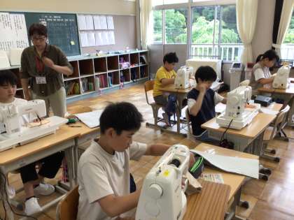 6年生は、家庭科でナップサック作りをしました。ミシンの機械トラブルにも負けずに、みんなで順番にミシンを使ったり、教えあったりしながら、学習できました。明日は、完成目指してがんばります。