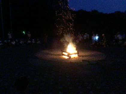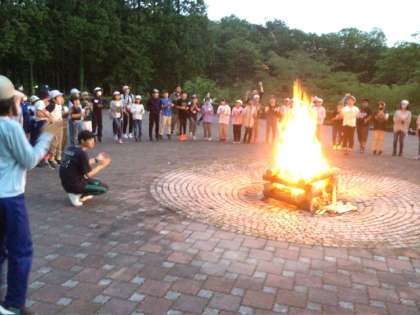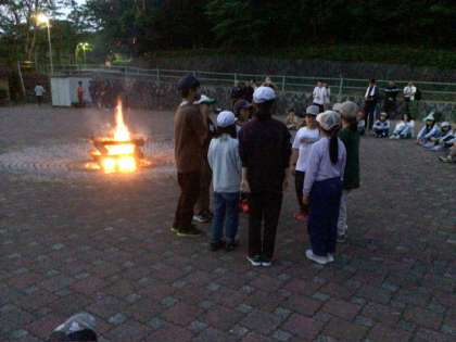 キャンプファイヤーでは、4つのグループで出しものを出し合いました。短い練習時間でしたが、どのグループもキャンプファイヤーを盛り上げました。楽しい時間が流れました。