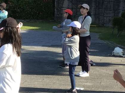 2日目、全員元気です。あさの集いを行いました。あさの集いでは、新盛の子が係を担当しました。この後、朝食です。