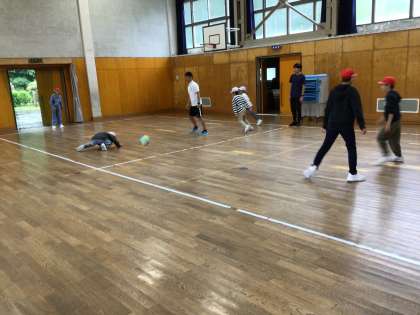 5、6年生は、体育でワンバウンドドッジボールをしました。ワンバウンドで相手をあてるのは、けっこう難しく、苦戦していました。