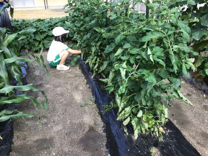 野菜や植物の成長の様子 公開日 2024/07/02 更新日 2024/07/02 各学年から 1、2年生で育てている野菜が、立派に成長しています。ミニトマトは実がパンパンでとてもおいしそうです。2年生が気がついて収穫していました。3、4年生の枝豆やオクラも大きくなってきました。1年生の朝顔や3、4年生のゴーヤもツルが伸びてきそうなので、校内整備員さんがネットをはってくださいました。