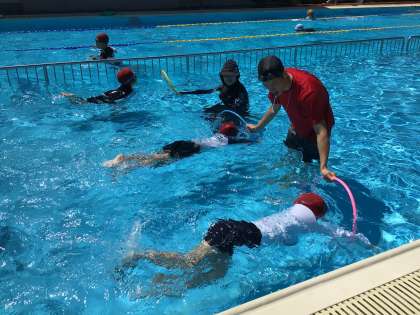 1、2年生も、だいぶ水に慣れてきました。今日は、伏し浮きや蹴伸び、バタ足をたくさん練習しました。少し水が苦手な子も、伏し浮きができるようになりました。2年生の子たちは、きれいなバタ足ができました。
