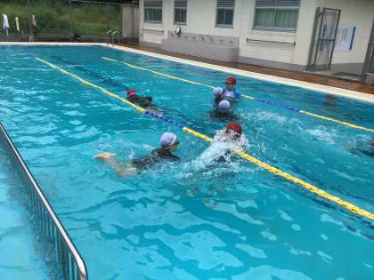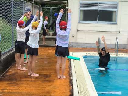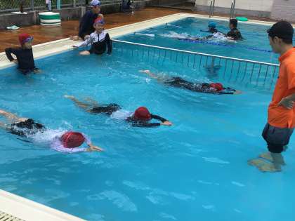 本年度最後の水泳学習 公開日 2024/07/10 更新日 2024/07/10 各学年から 1回目の水泳学習では、顔に水がかかるのが、ちょっと苦手だった子も、思うようにバタ足で進まなかった子も、クロールですぐに立ってしまった子も、今日の5回目の水泳学習では、水にもぐれるようになったり、ぐんぐんとバタ足ですすめるようになったり、クロールの息継ぎができるようになったりと、みるみる上達しました。今日で今年の水泳学習は終わりです。どの子も、自分の成長を感じ、終わることができたと思います。