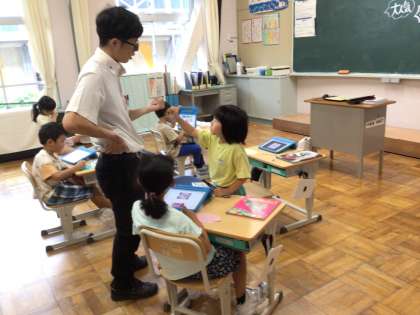 1年生はキュビナの使い方を学びました。起動の仕方だけでなく、おうちの人と一緒にやること、30分やったら休憩をとることなど、タブレットの使い方も合わせて復習しました。キュビナの問題を解く時間では、自分で問題ができると、手を挙げて喜ぶ子もいました。