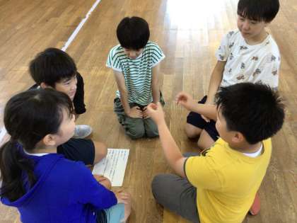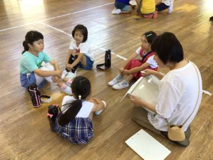 今日は、発表してくれた子から「みなさんなら、どんなかき氷が作りたいですか」という質問があり、それについて学年ごとにわかれて話し合いました。友だちの話を聞きながら、「それいいね。おいしそう」という声や、「みんないいアイデアもってるな」という褒め合う言葉もきかれました。学年ごとに話を繋げることを意識していたので、とても盛り上がったお話集会でした。