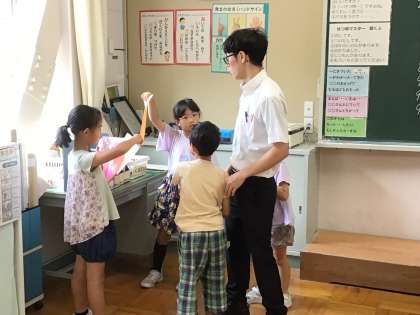 2年生は、朝からとても元気いっぱいでした。担任の先生と触れ合いながら、宿題を提出しました。