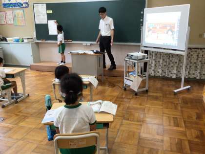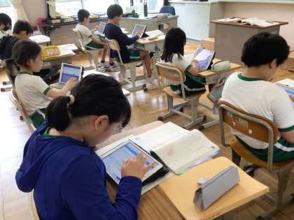 5,6年生は、国語で詩の学習をしていました。詩を読んだ感想をタブレットに書き込み、みんなで確認し合っていました。