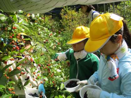 ブルーベリーをとりました 公開日 2024/09/05 更新日 2024/09/05 特色ある学校づくり推進事業 一年生が、地域の方の畑でブルーベリーをとらせていただきました。 始めは、とりかたの要領をえなかったのか、自分のお気に入りの実を探していたのか、なかなか収穫が進みませんでしたが、「もっとたくさんとりん」と声をかけていただいたこともあり、最後には、一人弁当箱二つ分くらいの収穫ができました。一年生は、大満足でした。 1年 2年 3年 4年 5年 6年 PTA 特色ある学校づくり