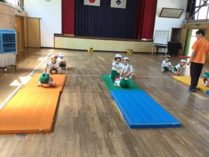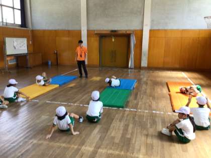 学習の様子からー1.2年生ー 公開日 2024/09/06 更新日 2024/09/06 各学年から 1.2年生は、体育でマット運動をしています。動物や物の形の真似をしていました。「アンテナ」では、上にあげた足を、ビンビンにしようと頑張っていました。