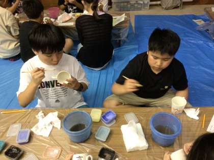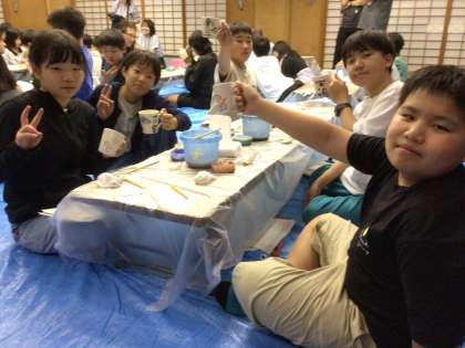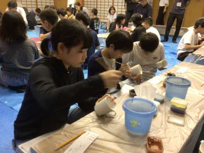 今日最後の活動の清水焼の絵付け体験です。 修学旅行の思い出をみんな真剣に絵にしていました。 焼き上がりが楽しみです。