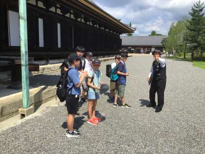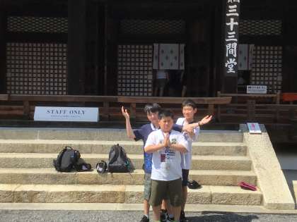 三十三間堂では、たくさんの千手観音に感動していました。タクシーの運転手さんが三十三間堂の案内をしてくれ、沢山のことを学びました。