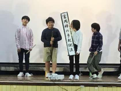 校内学芸会の様子から 公開日 2024/10/29 更新日 2024/10/29 全校での活動 劇の衣装を着て、大道具、放送、照明なども本番同様に行った校内学芸会。自分たちの劇や暗誦の合間に違う学年の発表も見ました。違う学年のよさも見つけられ、自分たちの発表にもいかせそうです。 1年 2年 3年 4年 5年 6年 行事