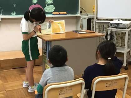 2年生が大蔵こども園の園児さんと交流会をしました。体育館でゲームをしたり、教室でクイズをだしたり、プレゼントを渡したりしました。少し時間ができたので、2年生の子が急遽、絵本の読み聞かせをしてあげることもできました。大蔵こども園のみなさんは、とても楽しんでいかれました。2年生も、とてもにこやかにおもてなしができました。