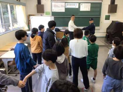 避難訓練ー不審者対応訓練ー 公開日 2024/11/21 更新日 2024/11/21 全校での活動 校内に不審者が侵入した時にどのように避難するのか、また、校外で不審者に出くわしたらどうするのかについて、足助警察署の方に教えていただきました。 1年 2年 3年 4年 5年 6年 行事