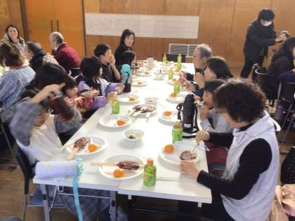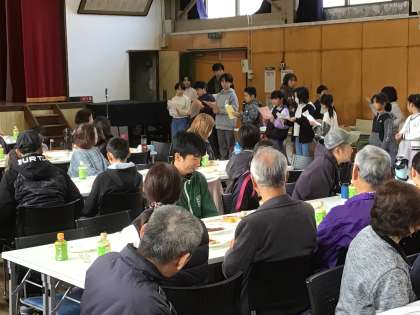 体育館でお客様をお招きして感謝の会を行いました。6年生の児童がお客様をご案内したり、会を進行したりしながら進めました。会食では、多くの児童が、今年お世話になった皆さんと楽しくお話をしながら五平餅を食べました。途中、お世話になったボランティアさんのお名前を子どもたちが紹介しました。大変多くの皆さんにご協力いただいていたことがよくわかりました。