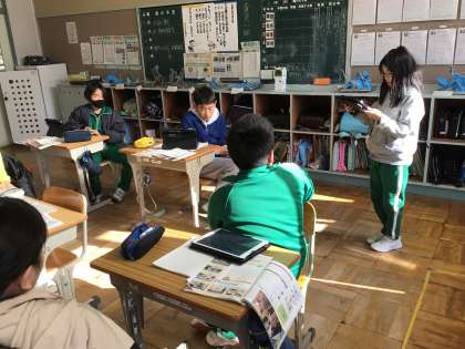 5.6年生は社会の時間に情報産業について学んでいます。学習の振り返りで「放送する前にたくさんの準備があることがわかった」「聴いている人のことを考えて、準備をしていることがわかった」と発表していました。