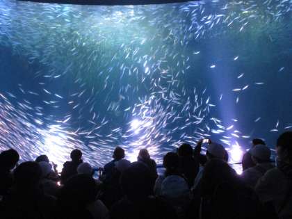 マイワシのトルネードとシャチのトレーニングは、全部の班が見学しました。マイワシのトルネードは、クリスマスバージョンでとてもきれいでした。