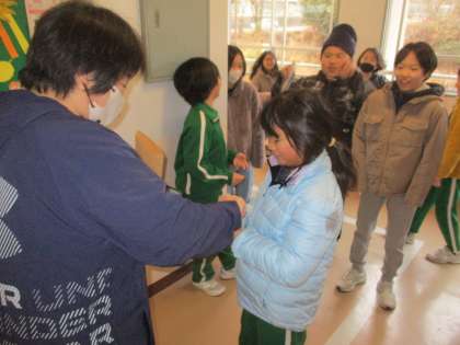 1月8日から10日までの3日間、全校であいさつ運動をしています。「自分から」「笑顔で」「元気よく」あいさつができた子には、大人からシールを一枚あげます。朝、交差点に着く前から、大きな声であいさつをする子、廊下をすれ違うたびに、目を見てあいさつをする子、にこにこ笑顔で相手の名前も入れてあいさつをする子がいます。現在の新盛小学校は、一日中、元気なあいさつの声でいっぱいです。