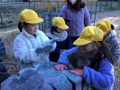 1年生は朝、生活科の学習で、冬探しをしていました。氷を見つけたり、遊具についた霜をたくさんとったりしてました。