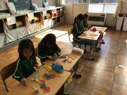 1年生は、一日入学に向けての準備を進めています。今日は、新一年生に贈るプレゼントを作りました。とてもかわいい花束ができそうです。