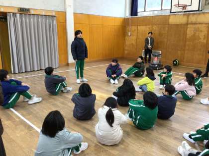 朝の活動の時間に、卒業式に向けての歌の練習をしました。その中で、卒業式で歌う歌詞の意味を全校で考えました。歌詞に出てくる「きらきらした」思い出を6年生の子が発表してくれたりもしました。意味をとらえた後の歌声は、とても気持ちのこもった歌声になりました。