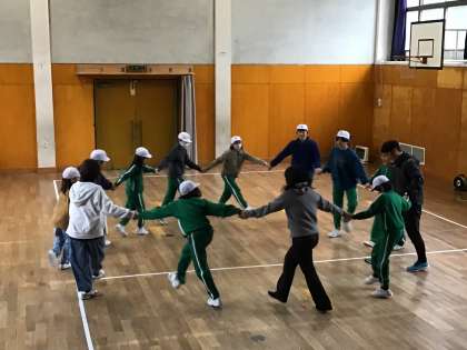 学習の様子からー5.6年生ー 公開日 2025/03/04 更新日 2025/03/04 特色ある学校づくり推進事業 体育の時間に、フォークダンスを踊りました。「マイムマイム」や「オクラホマミキサー」を踊りました。「マイムマイム」はステップも軽く、元気の良い掛け声が体育館に響きわたりました。 6年生は体力向上補助指導員の先生との学習は今日で最後です。先生に教えていただいた4年間の思い出と感謝の気持ちを伝えていました。 1年 2年 3年 4年 5年 6年 PTA 特色ある学校づくり