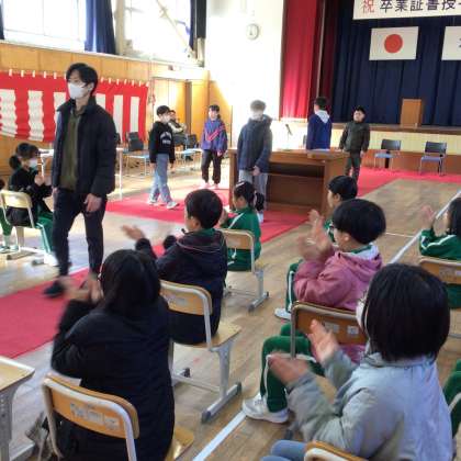 卒業式に向けた全校練習 公開日 2025/03/10 更新日 2025/03/10 特別活動 卒業式に向けて、はじめて全校練習をしました。6年生の所作をお手本に、きちんとした姿勢、お辞儀の仕方、体の向きの変え方などの練習をしました。また、卒業式のおよその流れを知りました。